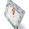 Rama foto din lemn, pictata in culori acrilice si innobilata, prin tehnica decoupage, cu ursuleti roz, inimioare, labute, numele, data evenimentului si mesajul dorit. Are inclus sistemul de sprijin pentru birou si sticla.