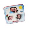 Marturie patrat din lemn, cu magnet, pictata in culori acrilice si innobilata, prin tehnica decoupage, cu numele si elemente jucause.