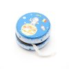 YO-YO din lemn, pictat in culori acrilice si innobilat, prin tehnici mixte, cu elemente ale spatiului cosmic si un mic astronaut, aselenizat pe Luna, tinand in mana steagul Romaniei. 🙂