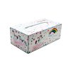 Setul contine: tavita, cutiuta pentru mot, set perie si oglinda, cutie suport servetele si rama foto. Produsele sunt pictate in culori acrilice si innobilate, prin tehnica decoupage, cu unicorni, curcubee, norisori si stelute, in culori delicate de roz – turcoaz. Detalii privind numele si data motului sunt incluse.