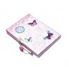 Jurnal cu lacat, pictat in culori acrilice si innobilat, prin tehnici mixte, cu elemente vintage, inimioare, flori si fluturi, intr-o nota adolescentina.