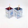 Suport din lemn pentru instrumente de scris/pensule, patrat, pictat in culori acrilice si innobilat, prin tehnica decoupage, cu logo, slogan si elemente specifice activitatii de consultanta in creditare. Creata special, la aniversare, pentru Kingstone. 🙂