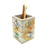 Suport din lemn pentru instrumente de scris/pensule, patrat, pictat in culori acrilice si innobilat, prin tehnica decoupage, cu elemente vintage, mesaje pozitive si libelule, ca simbol al schimbarii, prosperitatii si armoniei. Ofera un cadou deosebit colegilor sau prietenilor!