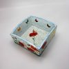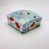 Cosulet din lemn, cu marginile externe bombate. Este pictat in culori acrilice si innobilat prin tehnica decoupage. Dimensiuni: baza 13,3×13,3 cm; H 6,7 cm