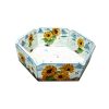 Cosulet din lemn, hexagonal, pictat in culori acrilice, innobilat prin tehnica decoupage. Dimensiuni: 21x24x6,5 cm