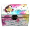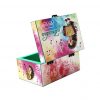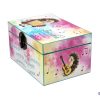Cutie din lemn pentru bijuterii, pictata in culori acrilice si innobilata prin tehnica decoupage, cu arici cantareti, creatie Lunablanca, note muzicale si mesaj (Music is what feelings sound like.), totul intr-o nota vesela si dulce.