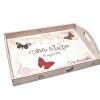 Tavita din lemn, innobilata, prin tehnici mixte, cu note muzicale, fluturi, numele mirilor si data nuntii.
