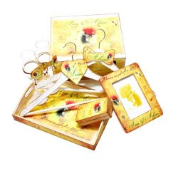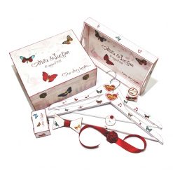 Pentru un moment desavarsit, puteti adauga, in aceeasi tematica: invitatii, marturii, meniuri, numere de masa, tava miresei, cufar bani/cutie amintiri, lumanari pentru decor, brosa domnisoara de onoare, papioane cavaler/mire, set umerase miri/nasi, cutie servetele, cutie bijuterii, pusculita, rama foto.